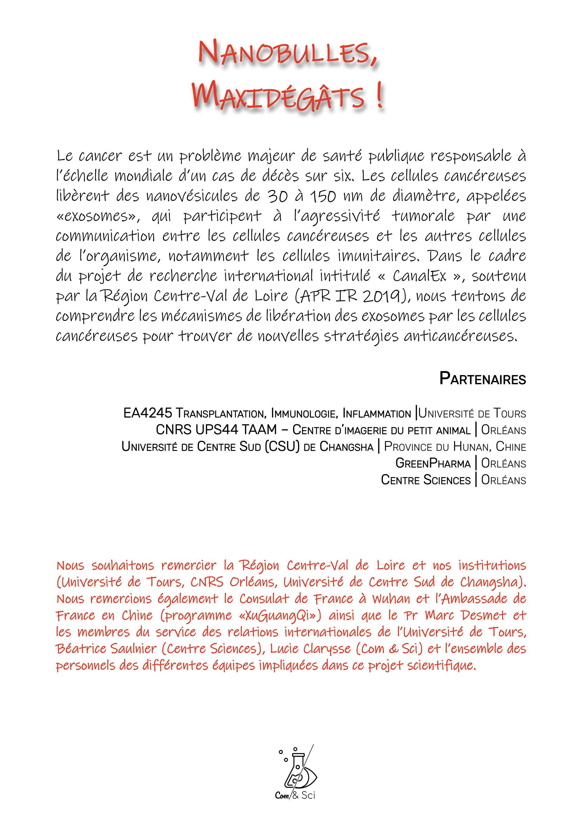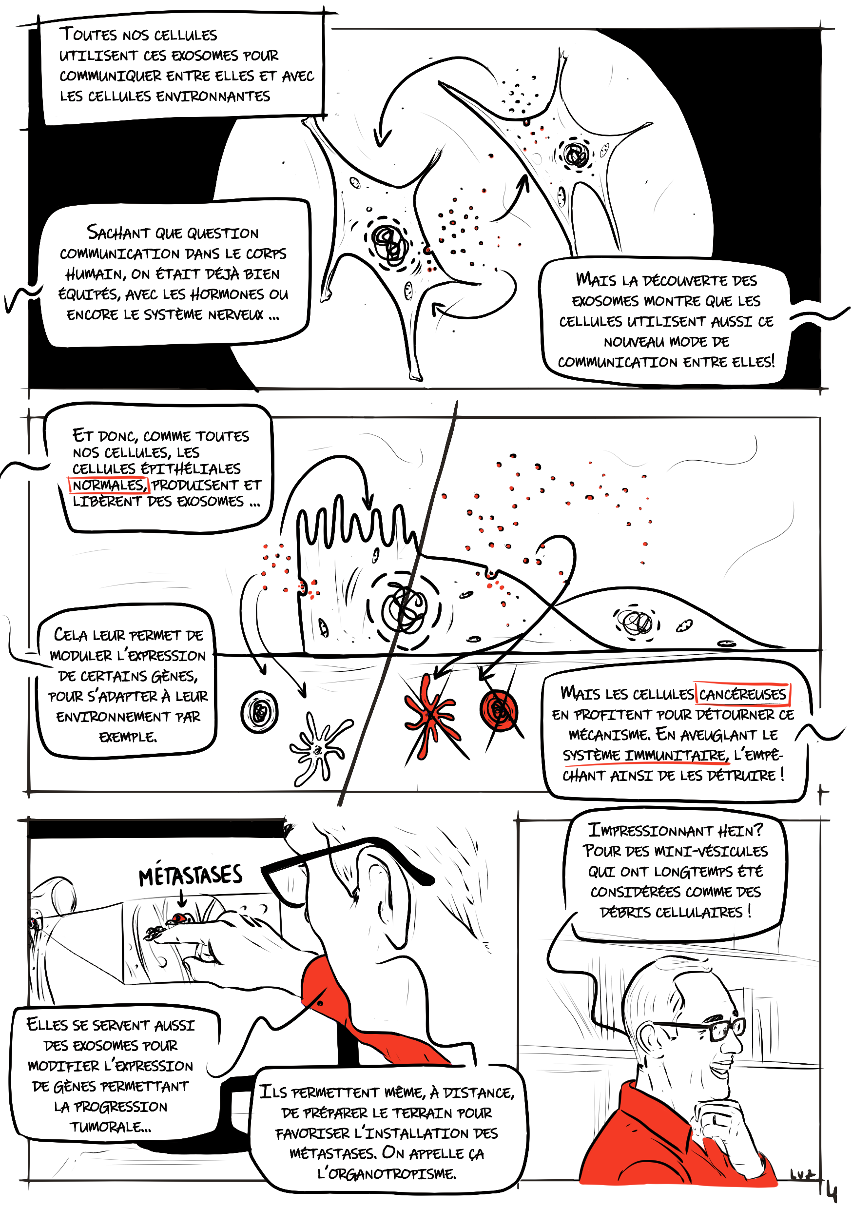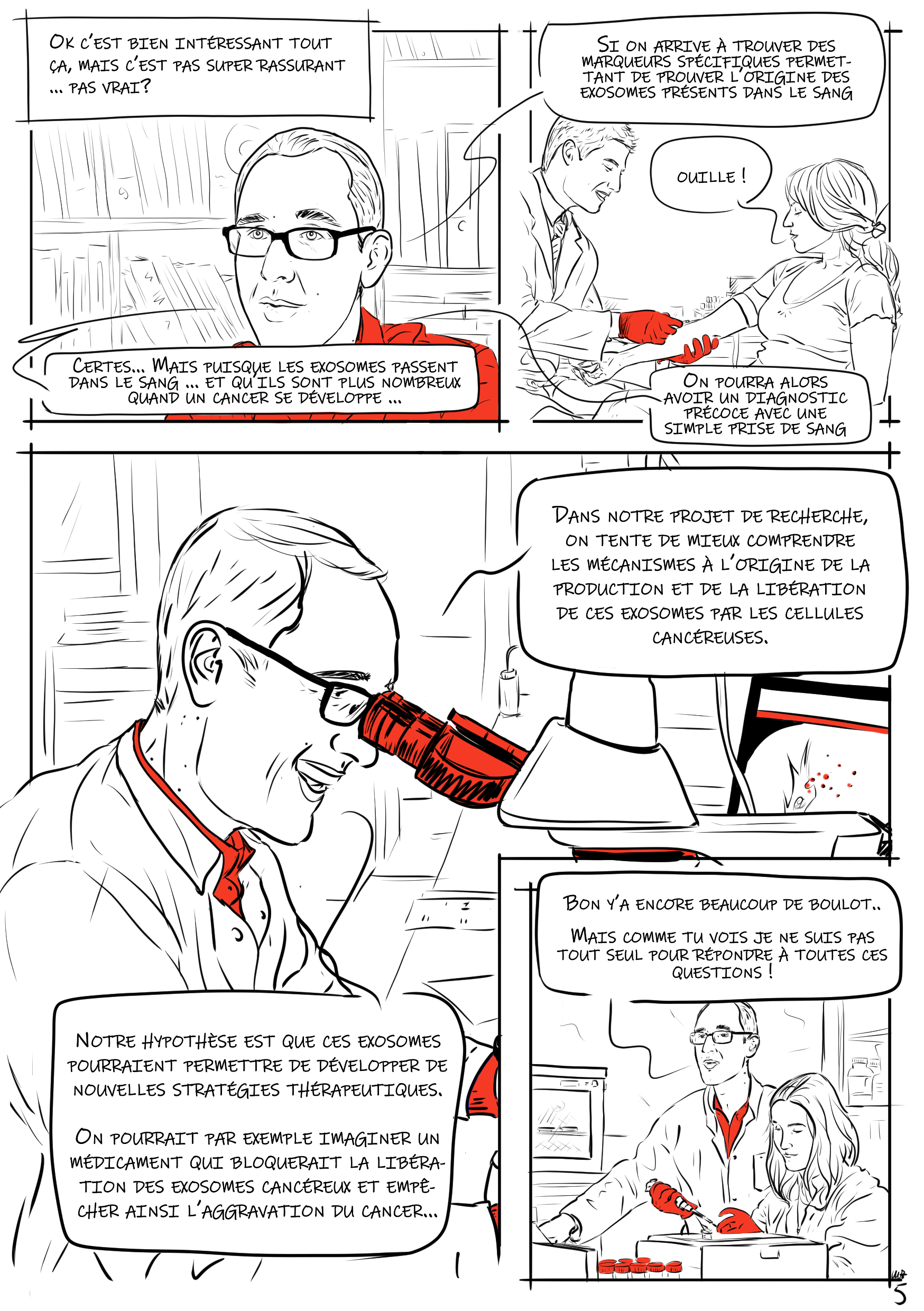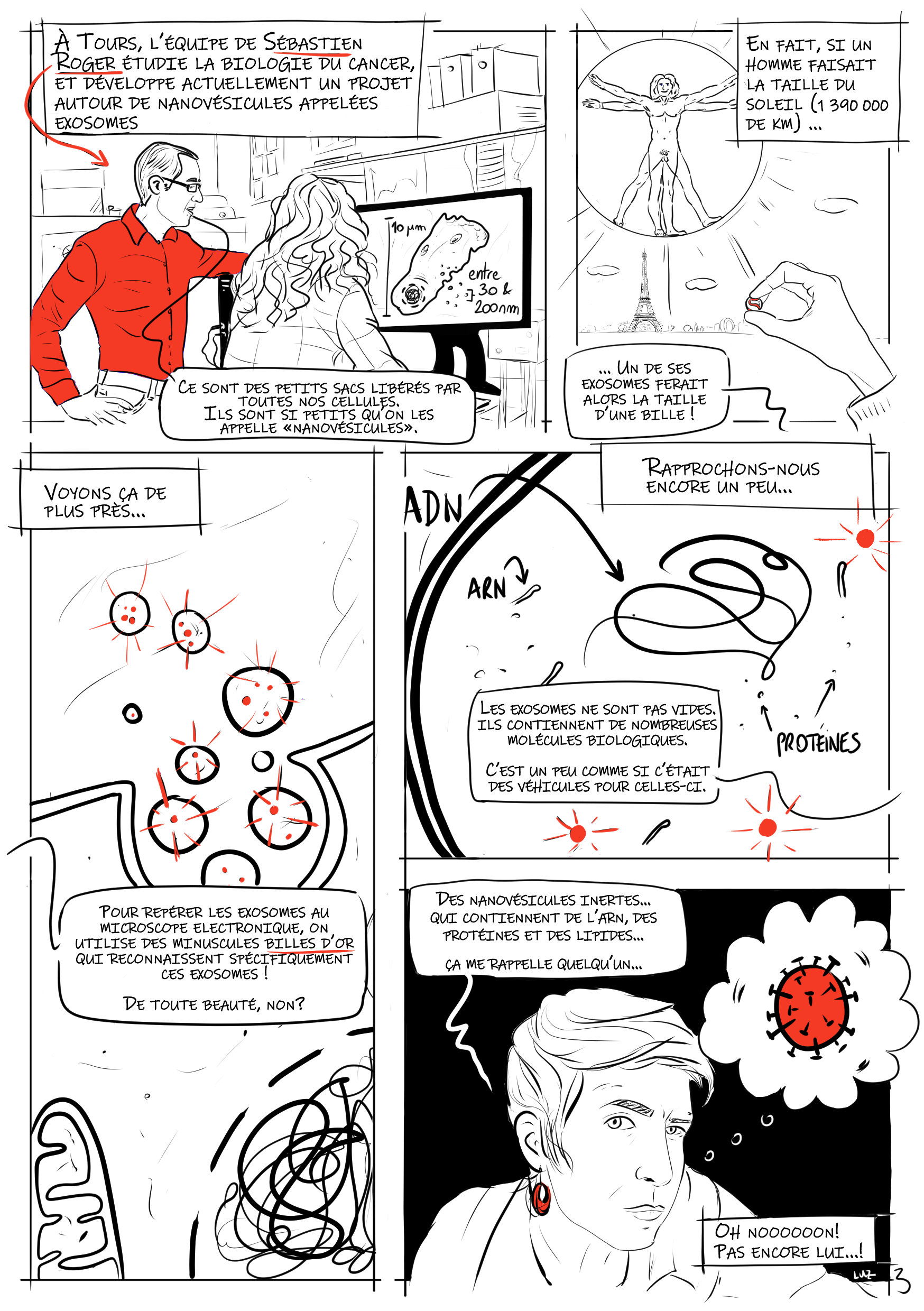 Réalisation d'une bande dessinée présentant le sujet de recherche d'un chercheur Tourangeau Sébastien Roger : Les EXOSOMES